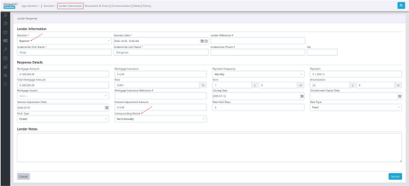 We have added a new field, “Compounding Period,” to the manual lender response created by agents after a lender submission. This allows agents to modify the Compounding Period set in the application from the Manual Response function, without needing to change it within the application itself. This change may be reflected in the document(s) generated when a response is accepted.