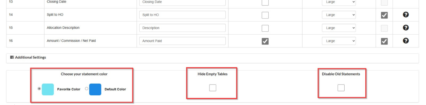 Default color will display statements in Scarlett Blue. Favorite colour will display the color chosen and setup under SETTINGS > COMPANY PROFILE> FAVORITE COLOR.