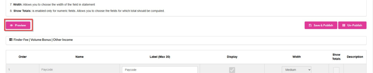 click on Preview to view how the statement will be displayed if saved.
