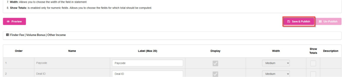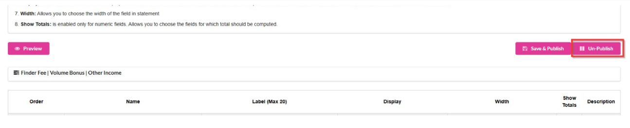 7. To disable Commission Statement (NEW) from showing up for the Agents click on Unpublish.