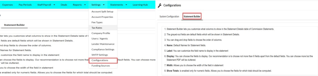 1. Go to Settings > Configuration > Click Statement Builder.